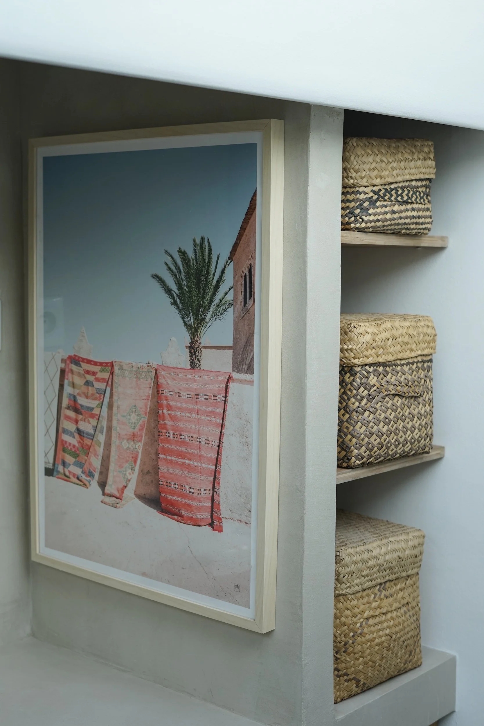 Les matériaux ont joué un rôle clé dans la transformation. Parmi les choix marquants, les suspensions Enamoura, façonnées à la main par des artisanes locales, illuminent les pièces avec douceur et authenticité. Réalisées en terre cuite, elles incarnent l’alliance parfaite entre design moderne et savoir-faire traditionnel.